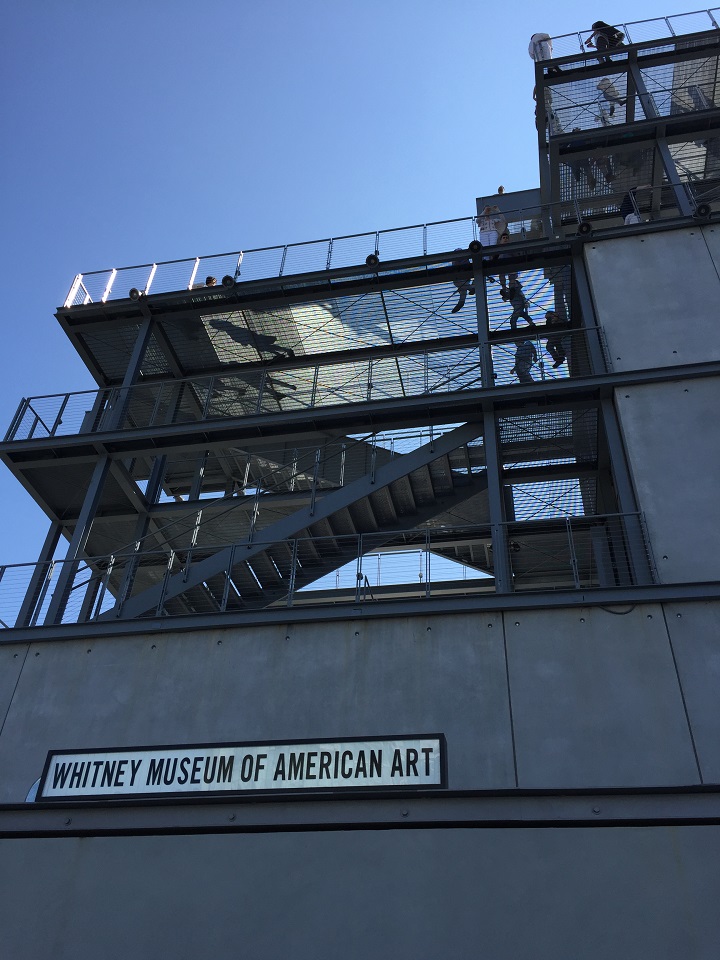 When Mom and I finished our Sunday stroll on the High Line in New York City, we found ourselves outside the Whitney Museum of American Art where we met my local friend. Since one of my employee work discounts includes free admission to the Whitney for myself and two guests we decided to explore the museum and take in the views of the city and the exhibits. Normal admission is $25 and some credit card customers have free or discounted admission opportunities (check out your credit card benefits in NYC). The tickets are timed to handle crowds and not get too overwhelming especially in the large elevators that slowly take you floor by floor.